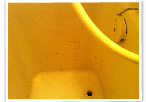 大阪府豊中市で浴室のハウスクリーニングの事例です。 浴槽の中全体にサビが広がっていて、酸性洗剤や一般的なサビ取り剤(還元剤)ではまったく反応しない状態でした。 浴槽の素材がFRPなので硬いもので擦るわけにもいかず、業務用...